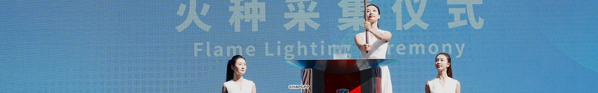 大会に関わるすべての人の熱い想いを込めた聖火を、開会式に向けてトーチでつなぎ、メイン会場の聖火台に届けるため、聖火リレーを実施します。