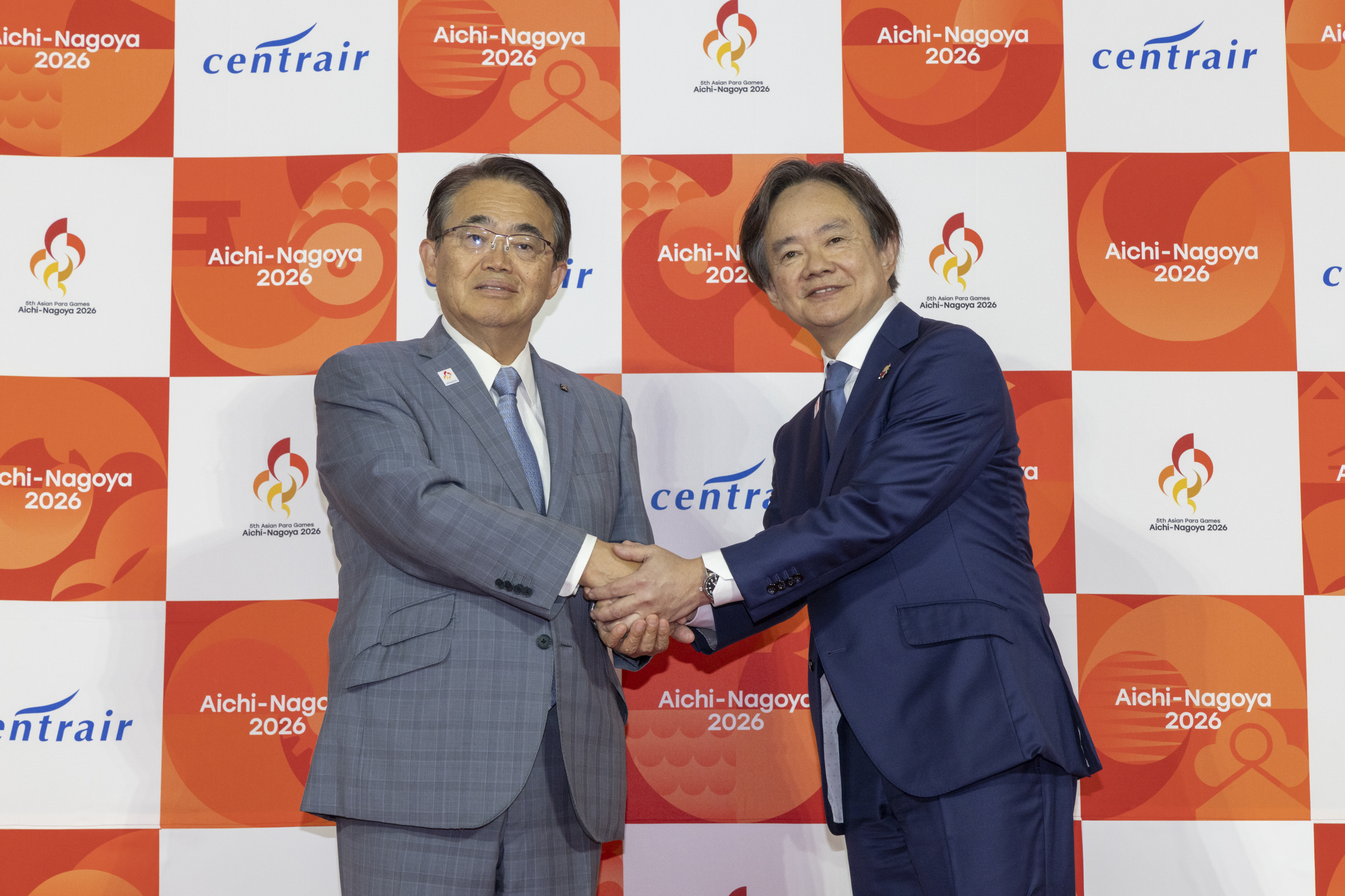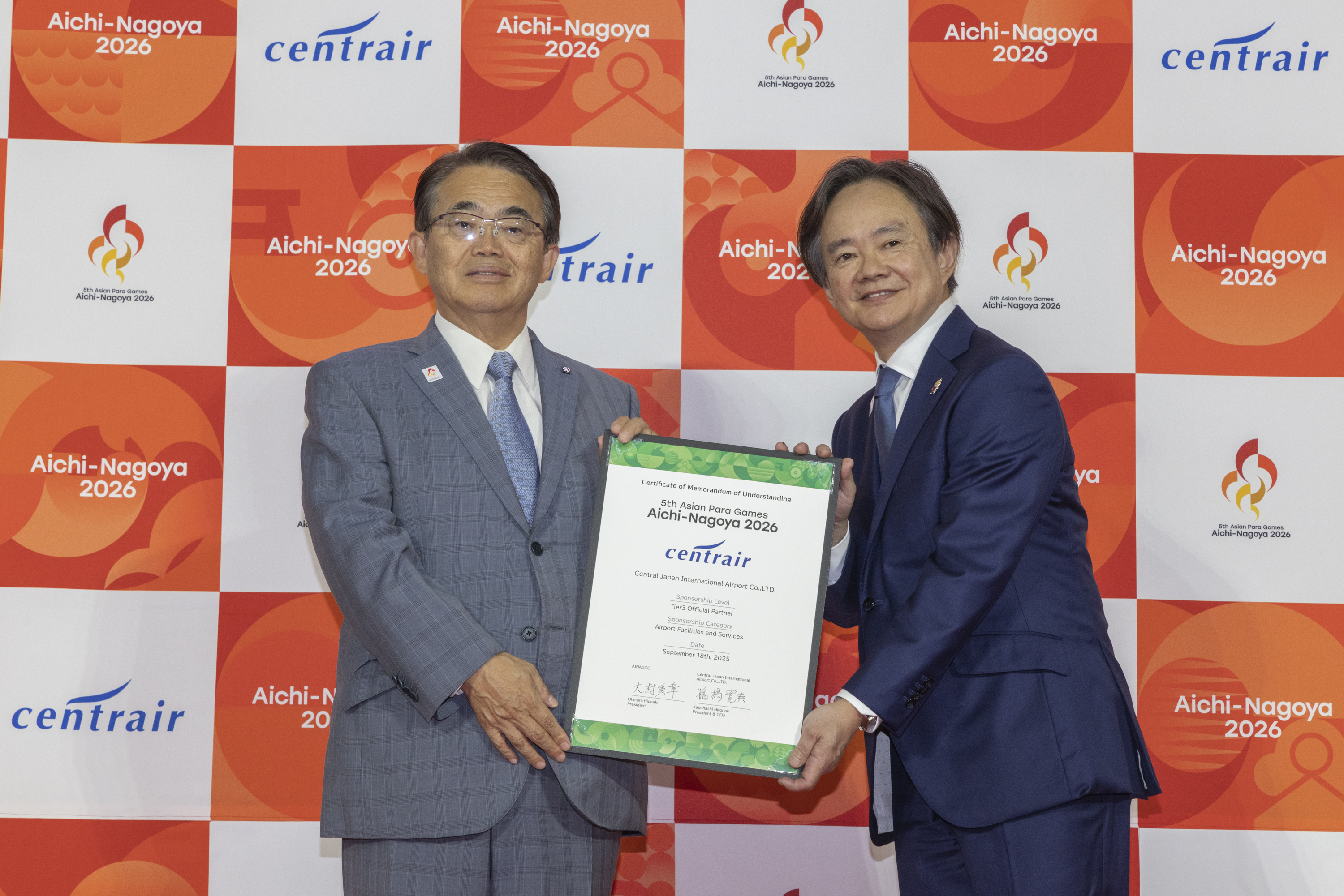 公益財団法人愛知・名古屋アジア・アジアパラ競技大会組織委員会は、中部国際空港株式会社と、第5回アジアパラ競技大会(2026/愛知・名古屋)のパートナーシップ契約に関する覚書を締結し、記念セレモニーを開催しました。