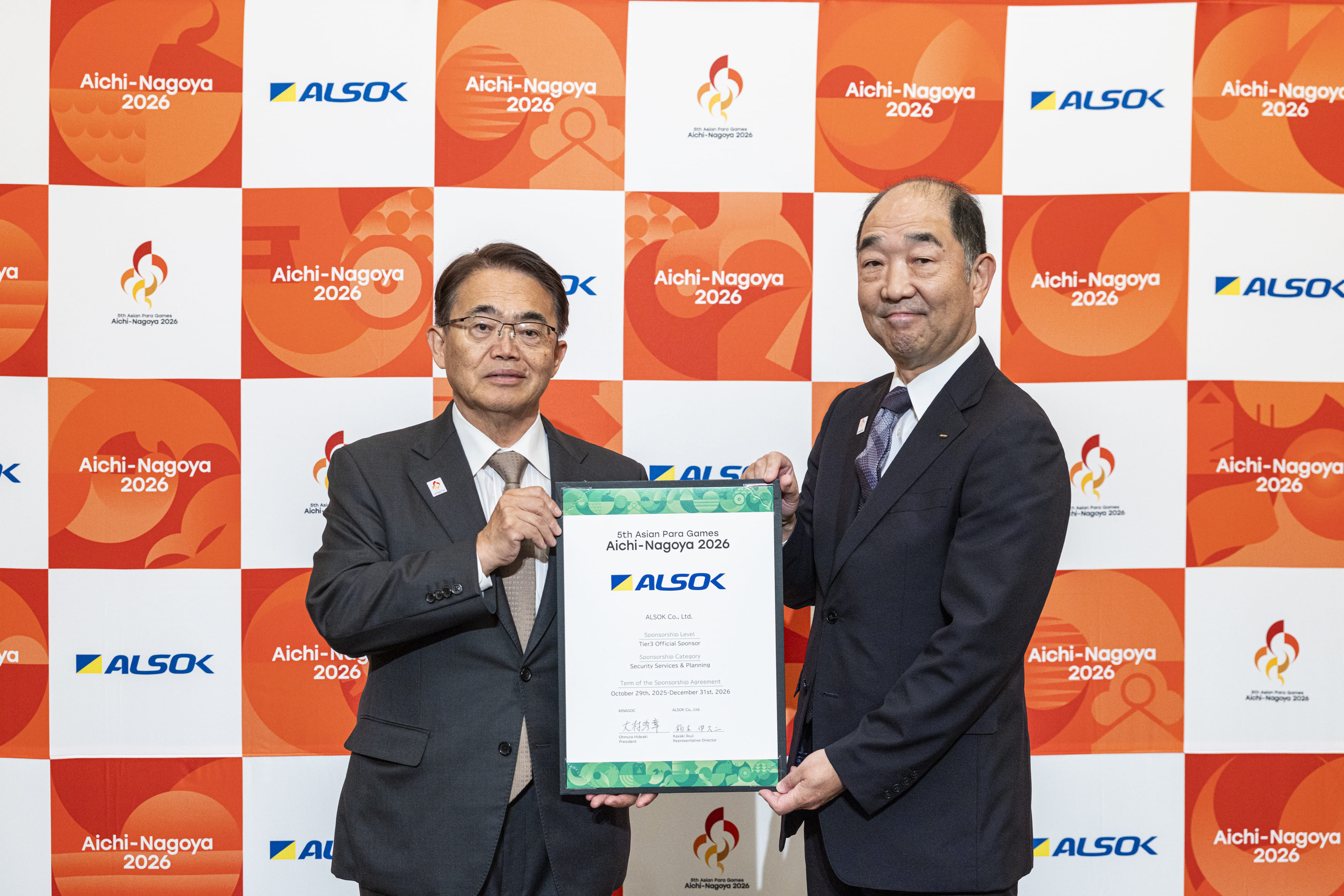 公益財団法人愛知・名古屋アジア・アジアパラ競技大会組織委員会は、ALSOK株式会社と、第5回アジアパラ競技大会(2026/愛知・名古屋)のパートナーシップ契約を締結し、締結式を開催しました。