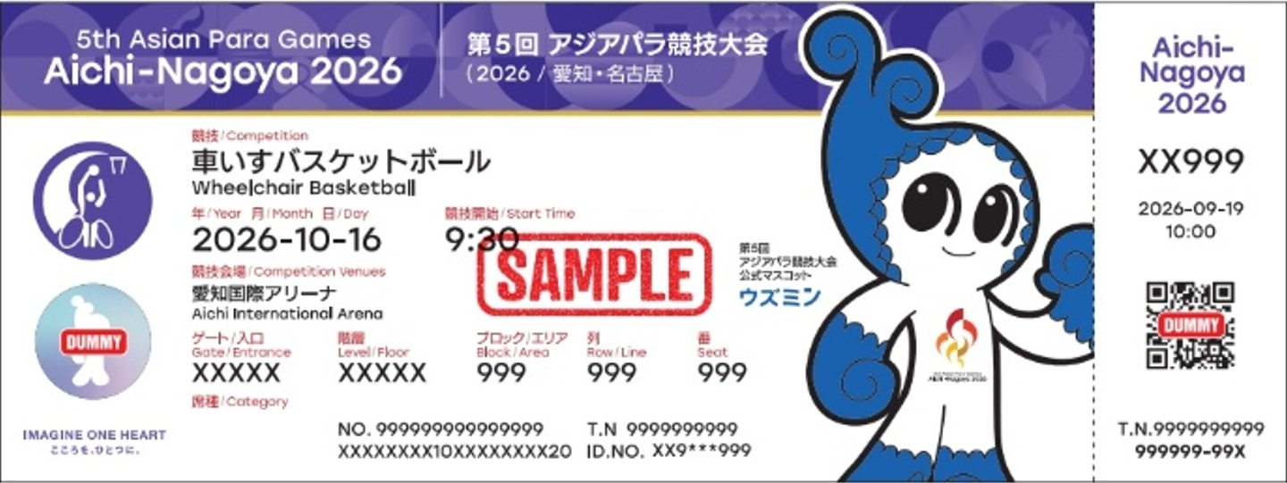 公益財団法人愛知・名古屋アジア・アジアパラ競技大会組織委員会(以下、「組織委員会」という。)は、この度、第5回アジアパラ競技大会(2026/愛知・名古屋)(以下、「愛知・名古屋2026大会」という。)チケットの先行販売の開始についてお知らせします。