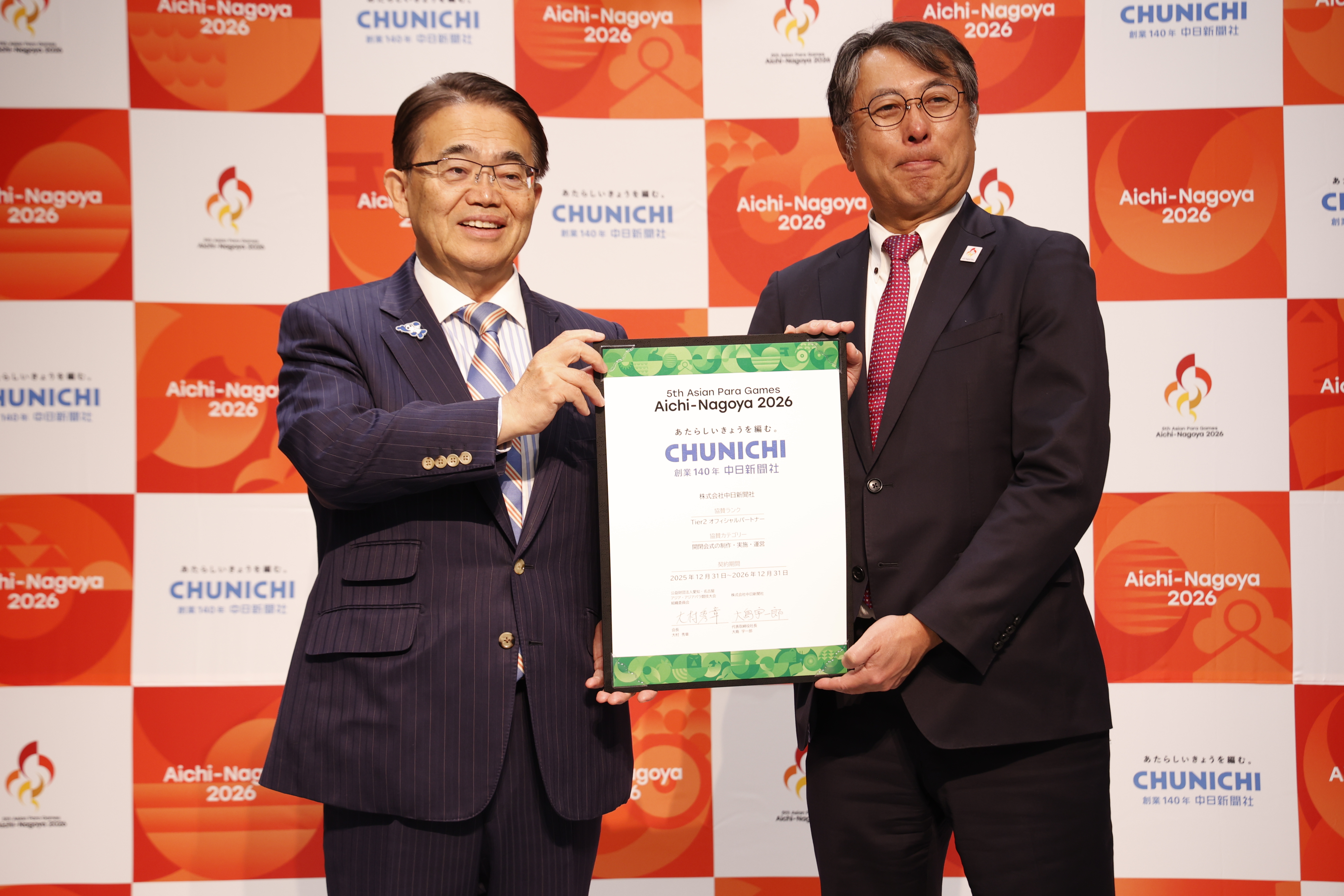 公益財団法人愛知・名古屋アジア・アジアパラ競技大会組織委員会は、株式会社中日新聞社と、第5回アジアパラ競技大会のパートナーシップ契約を締結し、締結式を開催しました。